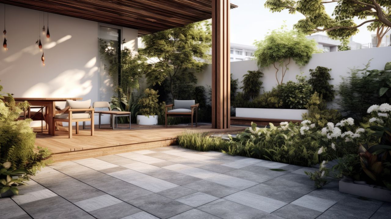 3. Fliesenböden für Eingangsbereich, Terrasse, Garten, Hauswände